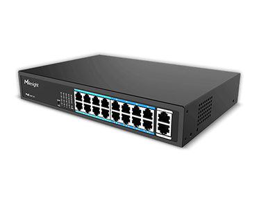 Milesight PoE Switch Series offers flexible options for various applications with 4 to 24 PoE ports and 2 SFP ports. It recognizes power-receiving devices, provides power and transmits data over one Ethernet cable to simplify network deployment in remote areas without power outlets.